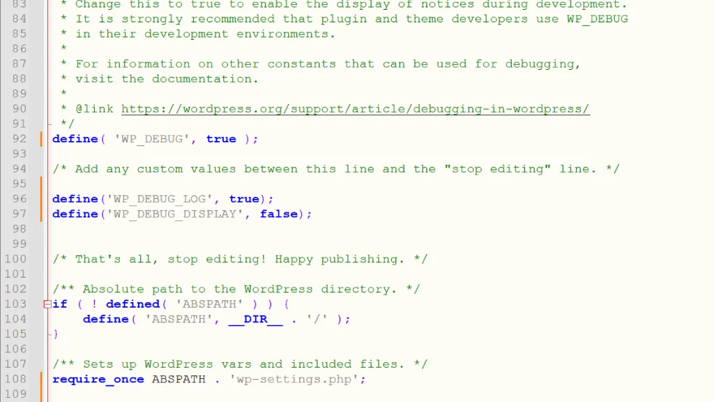 Domyślnie w WordPressie wyłączone jest tzw. „logowanie błędów”. W przypadku problemów, musisz włączyć je ręcznie w plikach WordPressa. Za pomocą programu do obsługi FTP/sFTP połącz się ze swoim hostingiem i w głównym katalogu strony poszukaj pliku wp-config.php. Otwórz wskazany plik (edytuj w programie takim jak np. Notepad++) i poszukaj linijki: