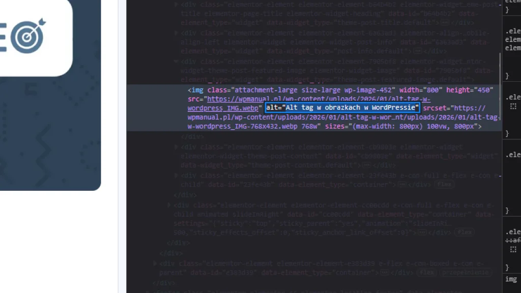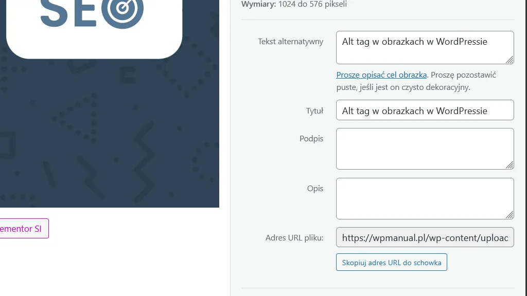 Jeśli używasz Elementora, to nie musisz zmieniać nic więcej – Elementor skorzysta z tekstu alternatywnego umieszczonego w „szczegółach obrazka”.
